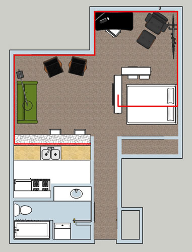 Imagine the red as a little road map for all the cable-based signals running through the space
