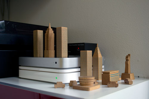 Tiny Manhattan wooden blocks are a playful detail that gets a lot of smiles.